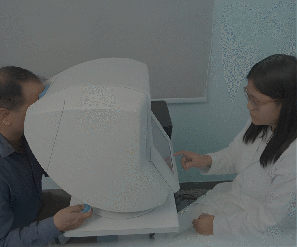Maps peripheral vision to detect vision loss.