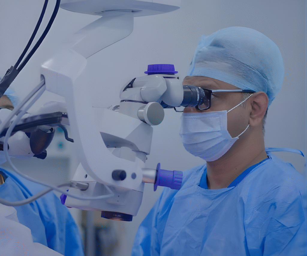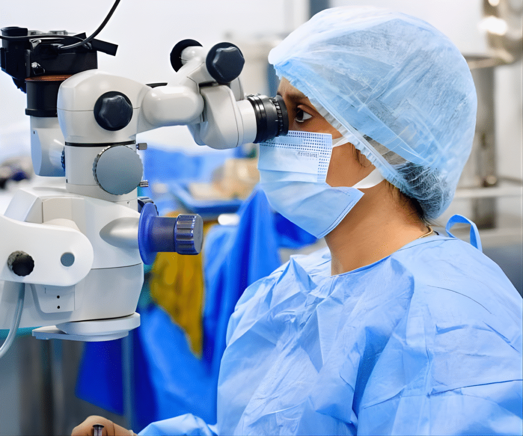 • A tiny incision (2–3 mm) is made at the edge of the cornea.